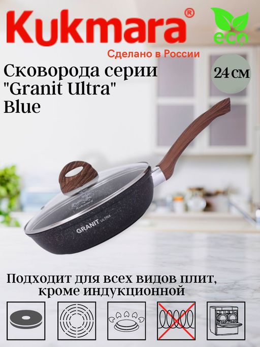 • Сковорода 240мм с ручкой, со стеклянной крышкой,антипригарное покрытие"Granit ultra" (blue) сгг241а