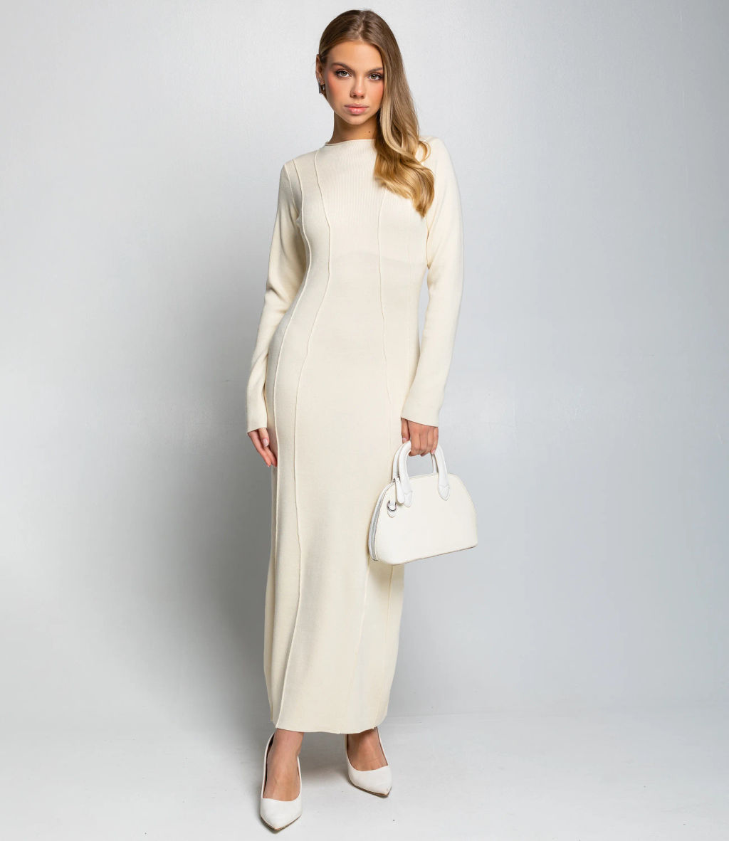 Платье это часть гардероба, которая подчёркивает женственность любой женщины. Элегантное платье макси длины с длинными рукавами и прямым силуэтом создаёт сдержанный и изысканный образ. Минималистичный дизайн с высокой горловиной делает модель универсальной: она подходит как для повседневной носки, так и для более формальных случаев, легко комбинируется с различными аксессуарами и обувью. Для пошива использована ткань: 65% хлопок, 30% полиэстер, 5% эластан. Материал мягкий и тянущийся, обеспечивает комфорт и свободу движений; эластан сохраняет форму, а хлопок гарантирует хорошую воздухопроницаемость. Полиэстер повышает износостойкость изделия, поэтому при соблюдении рекомендаций по уходу платье сохраняет первоначальный вид даже после многократных стирок. Вы сможете носить его с большим удовольствием. Обратите внимание на глубокие, насыщенные оттенки: цвет полностью соответствует фотографии на странице, что важно при комплектации витрины и формировании ассортимента. На странице размещена таблица размеров; с её помощью вы сможете самостоятельно снять мерки и подобрать подходящие размеры для покупательниц. Мы предлагаем выгодные оптовые условия, гибкую ценовую политику и надёжные поставки для ваших магазинов. Установленная нами цена адекватна и позволит вам формировать привлекательную наценку и обеспечивать высокую оборотность. Предложите своим клиенткам платье, сочетающее комфорт, качество и элегантный стиль. Рост модели 164, 83-61-89. -- Характеристики -- Цвет: кремовый Пол: Женский Страна производитель: Китай Сезон: Осень Материал: Хлопок, Эластан, Полиэстер
