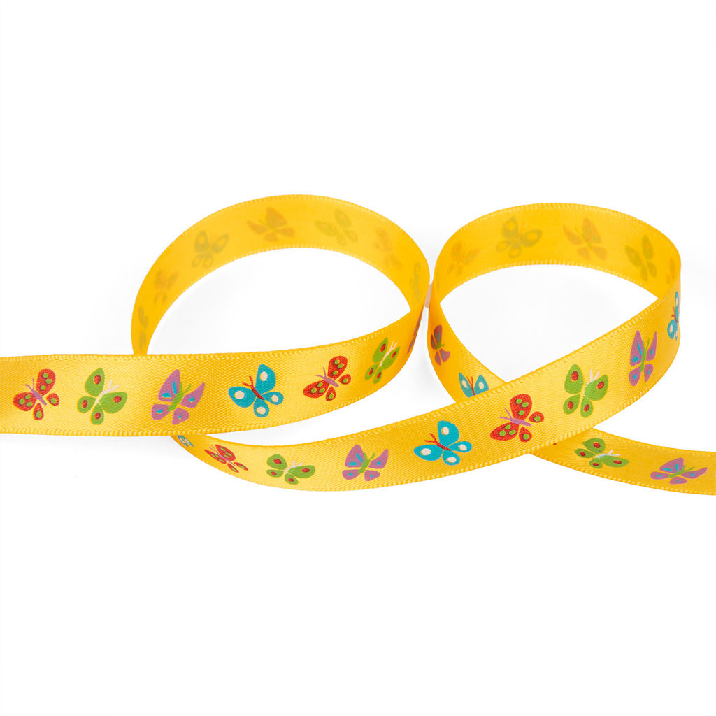 Атласная лента с нанесенным печатным рисунком. Применяется в качестве декоративной отделки одежды, при создании открыток, альбомов в скрапбукинге.