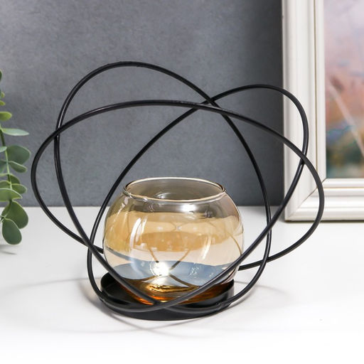 Подсвечник на 1 свечу «Лофт. Сплетение колец», металл, стекло, чёрный, 14×17.5×11.5 см