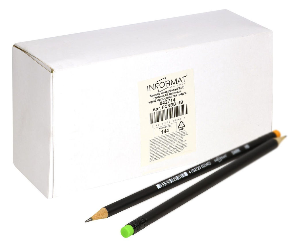 • Цена за 5 шт. Карандаш чернографитный деревянный INFORMAT Dark НВ с ластиком, заточенный, круглый, принт...