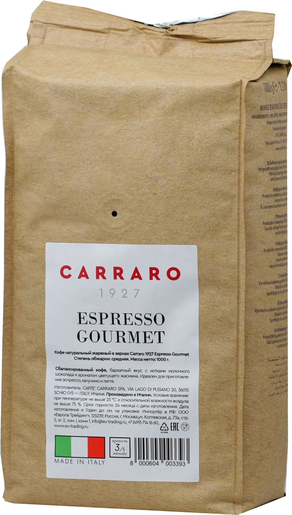 • Carraro. Espresso Gourmet (зерновой) 1 кг. мягкая упаковка
