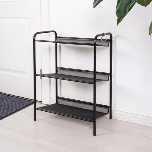 Долговечная, благодаря каркасу и полкам из стали. Три полки вместят до 6 пар обуви, а продуманные расстояния между ними позволят разместить как летнюю, так и зимнюю обувь. Благодаря наклону полок и бортикам ваши стены будут чистые. Каждая полка выдерживает нагрузку до 8 кг.
