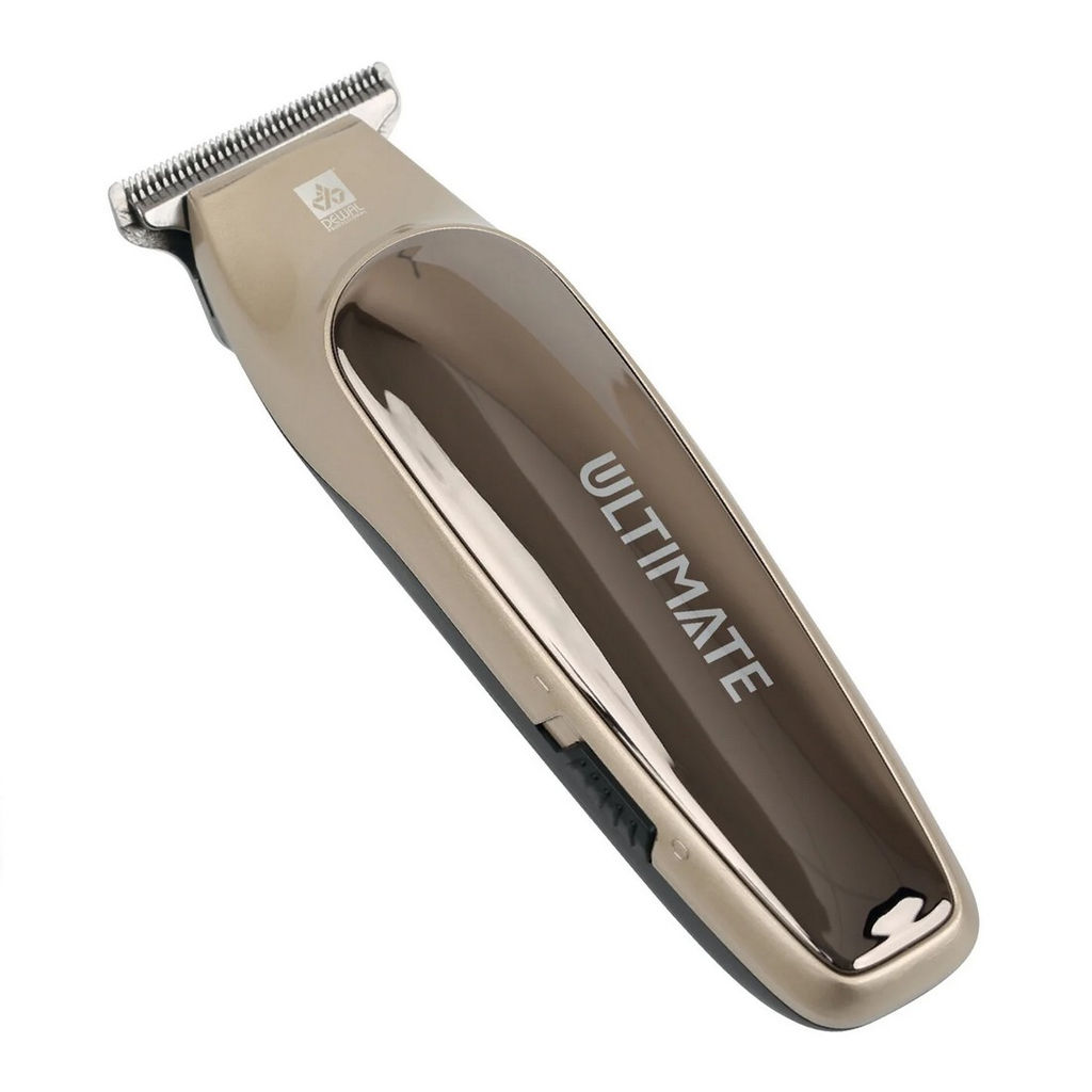 ULTIMATE это маленький и изящный триммер выполненный в корпусе золотисто-бежевого цвета. Его отличительные особенности: высота среза 0,2 мм и дисплей, который отображает процент оставшейся зарядки. На корпусе триммера с обоих сторон имеются есть углубления для пальцев, благодаря которым даже при продолжительной стрижке рука мастера не устает.