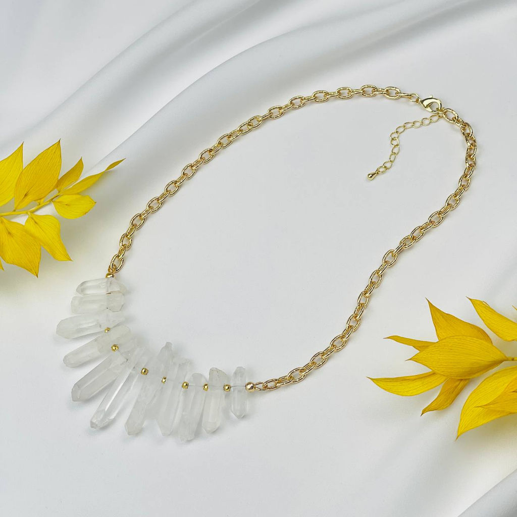 Колье на цепочке с необработанным Горным Хрусталем 44 см +