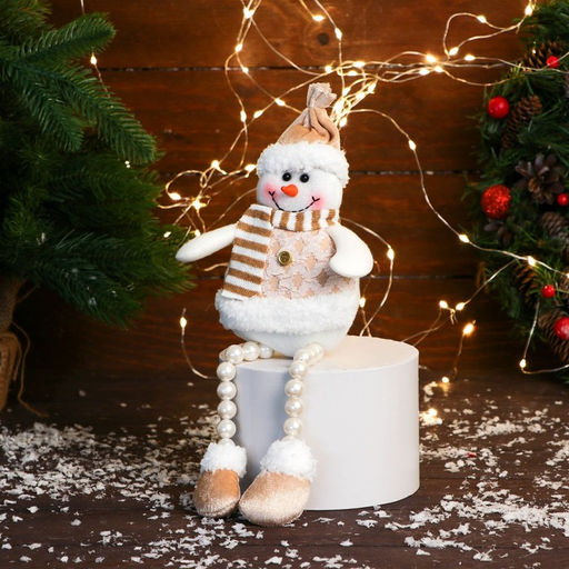 • Игрушка мягкая «Снеговик в полосатом шарфе» 10×30 см, золото