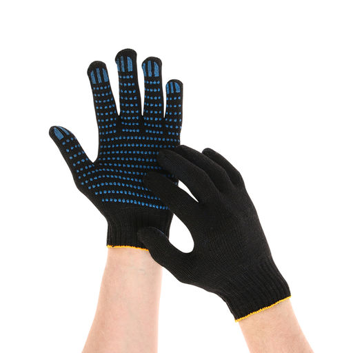 • Цена за 10 шт. Перчатки садовые, хб, вязка 7 класс, 6 нитей, размер 10, с ПВХ точками, чёрные, Greengo