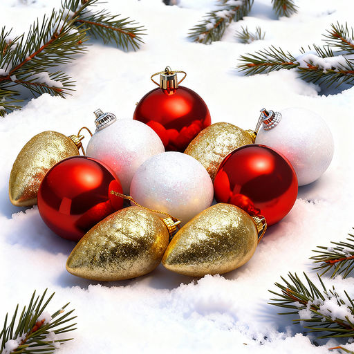 • Набор новогодних украшений (золотые шишки, красные/белые шарики, 10шт х 5см)