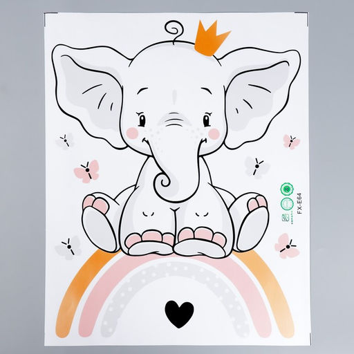 • Наклейка пластик интерьерная цветная "Слонёнок в короне на радуге" 39х49 см