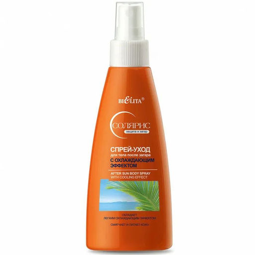Описание товара Спрей для тела после загара с охлаждающим эффектом обеспечивает уход за кожей после длительного пребывания на солнце. D-пантенол снимает раздражения, покраснения кожи, оказывает успокаивающее действие. Масло жожоба интенсивно питает, смягчает и увлажняет кожу. Экстракт зелёного чая оказывает антиоксидантное действие. Обладает легким охлаждающим эффектом. Смягчает и питает кожу. Требует повторного нанесения после купания и во время длительного пребывания на солнце.