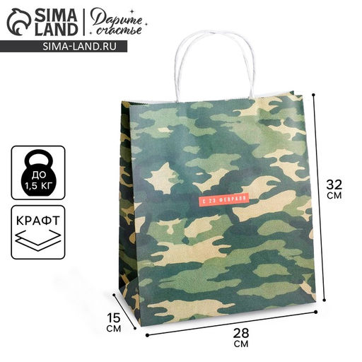 • Пакет подарочный крафт, упаковка, С 23 февраля, 32?28?15 см