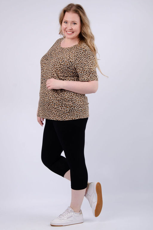 Легкий комплект из мягкой вискозы идеально подойдет для летних дней и активного отдыха. В набор входит стильная футболка и удобные бриджи, которые обеспечивают свободу движений во время тренировок, занятий йогой, танцев или фитнеса. Этот образ создает базовый гардероб для девушек и женщин, небольших и высоких, большой выбор размеров plus size.
