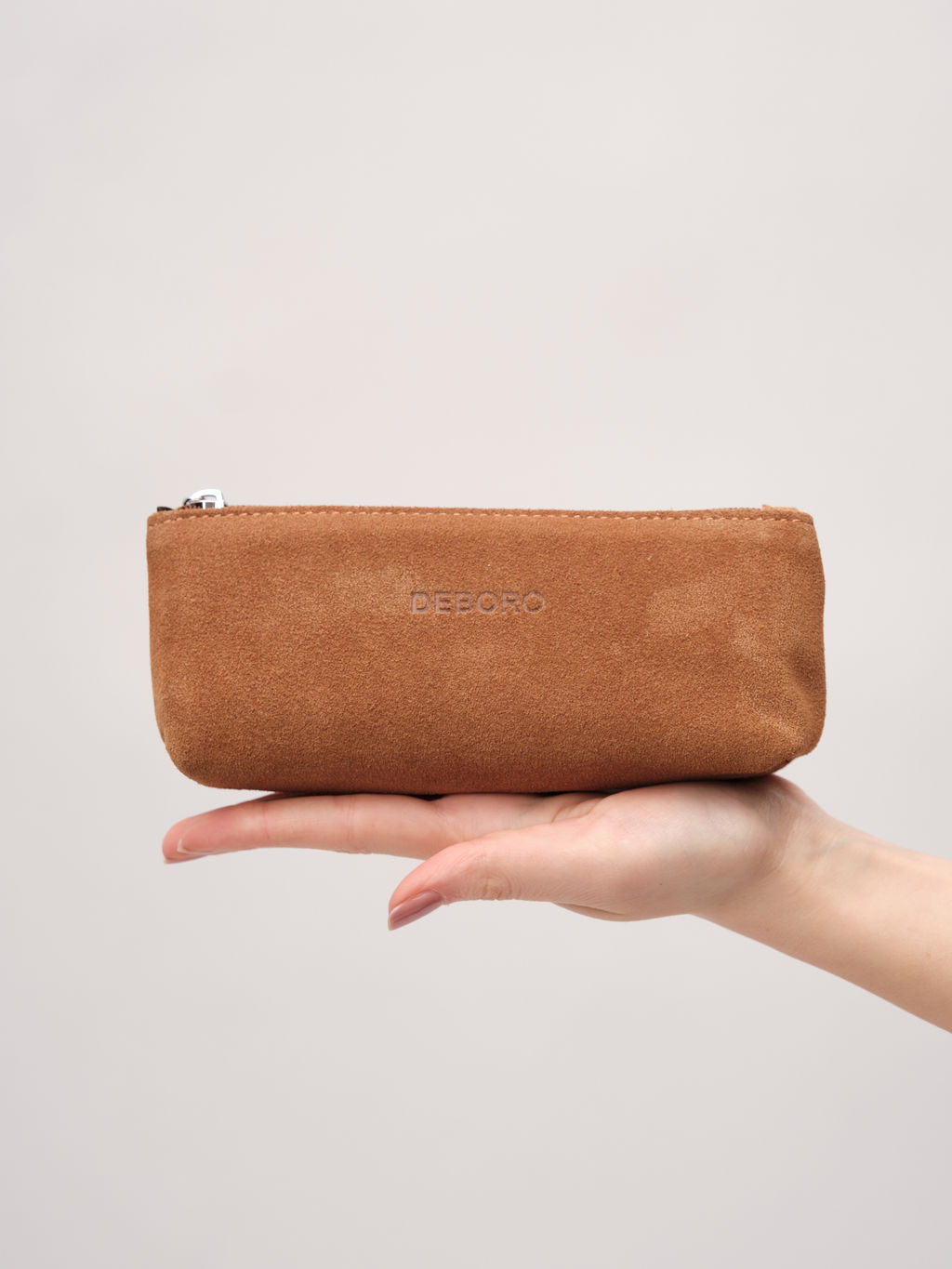 Стильная женская косметичка Deboro 17-96 светло-коричневый из натуральной замши. Детали: натуральная замша, металлическая молния, 1 внутреннее отделение, текстильная подкладка. Выполнена из качественной натуральной замши с бархатистой, приятной на ощупь поверхностью. Надежная металлическая молния защищает содержимое и легко открывается. Лаконичная прямоугольная форма для удобного хранения косметики и мелких аксессуаров. Замша красиво отражает свет, подчеркивая глубину цвета. Логотип бренда, выполненный тиснением, добавляет аккуратный, элегантный акцент. Удобный компактный размер для любой сумки, путешествий и ежедневного использования. Женская косметичка Deboro 17-96 сочетает простоту, функциональность и выразительный внешний вид благодаря благородной натуральной замше и продуманному дизайну. -- Характеристики -- Цвет: светло-коричневый Материал: Замша натуральная Бренд: Deboro Страна-изготовитель: Россия Высота, см: 8 Ширина, см: 21 Глубина, см: 5 Материал подкладки: Текстиль Количество внутренних отделений: 1 Тип застежки: Молния Цвет фурнитуры: Никель