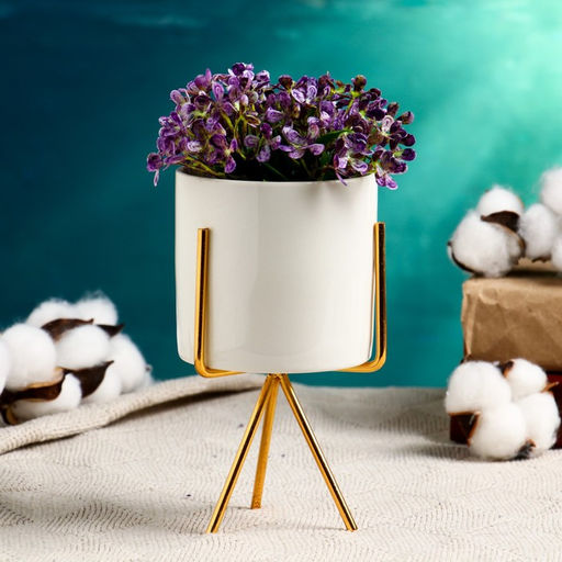 • Кашпо для цветов «Цилиндр», 300 мл, 15×8×8 см, керамика, на золотистой подставке, белое