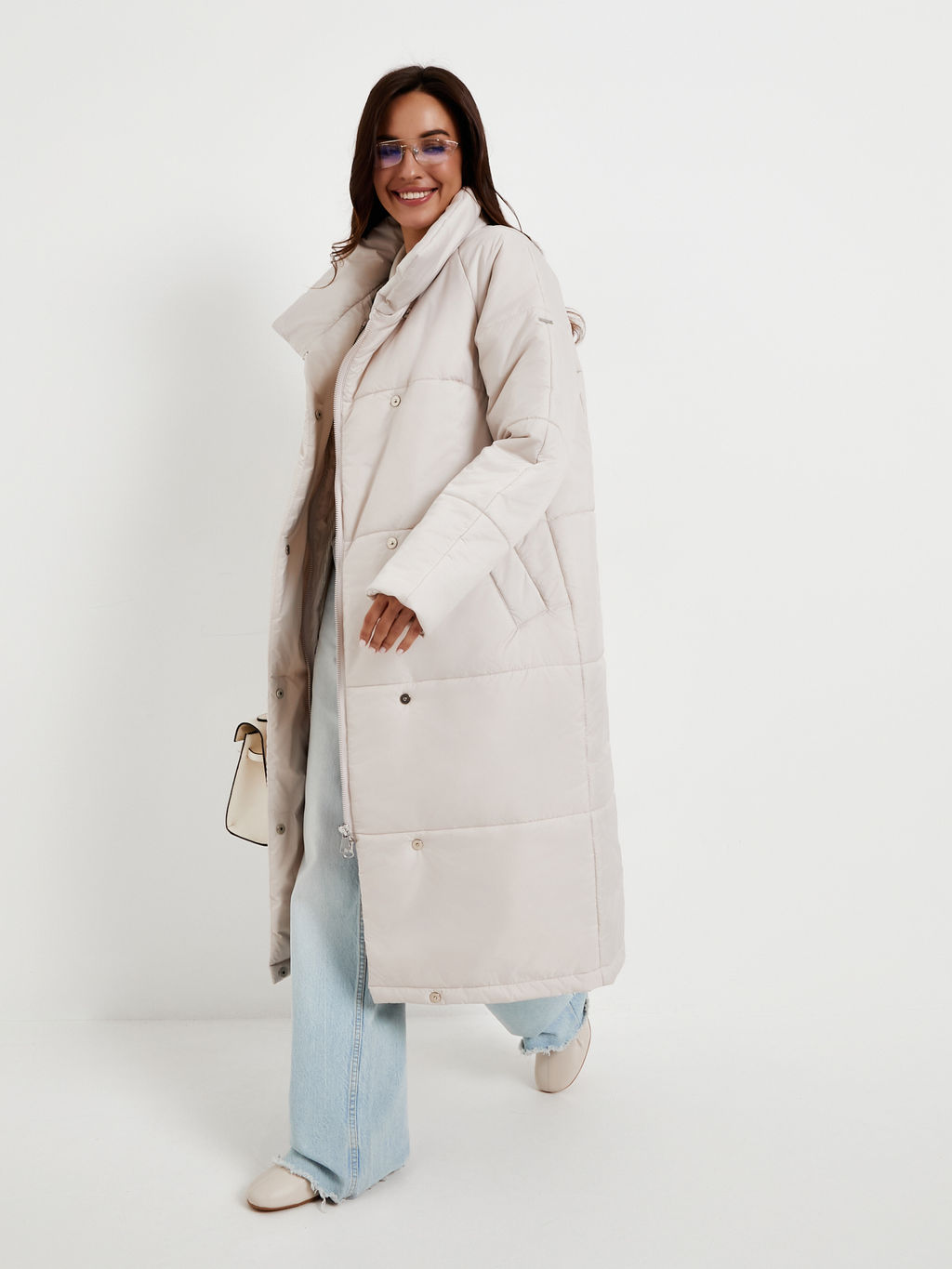 Вид застежки: высокая стойка на молнии и магнитах, широкая обтачка для регулировки рукава по длине