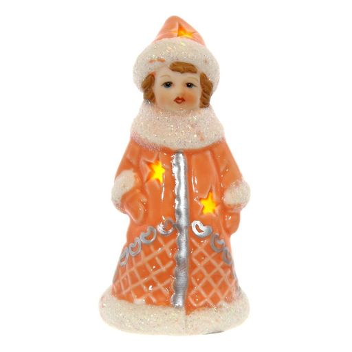 Новогодняя фигурка Снегурочки с подсветкой наполнит ваш дом сказкой и уютом. Украшение выполнено из фарфора, покрытого глазурью. Такая снегурочка создаст праздничный декор помещения, а также может спользоваться в качестве красивого подарка на Новый год для ваших близких. Представлена в двух вариантах.