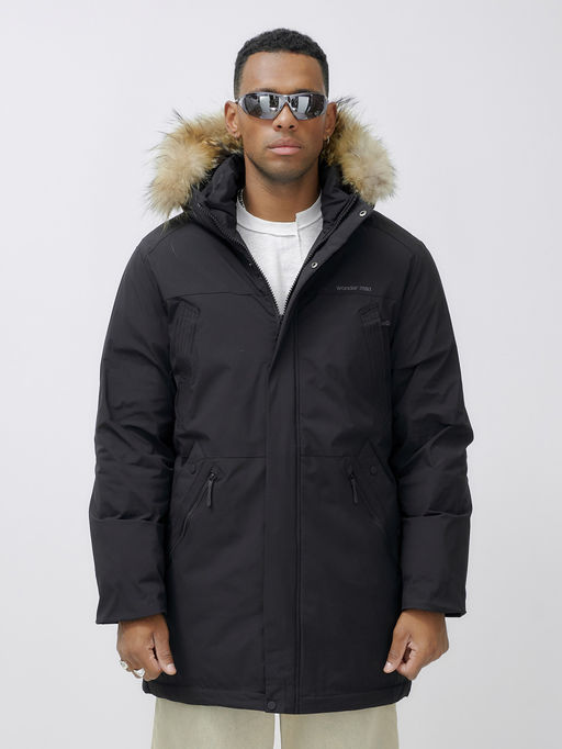 Название модели: Парка мужская зимняя удлиненная с мехом черного цвета 999Ch