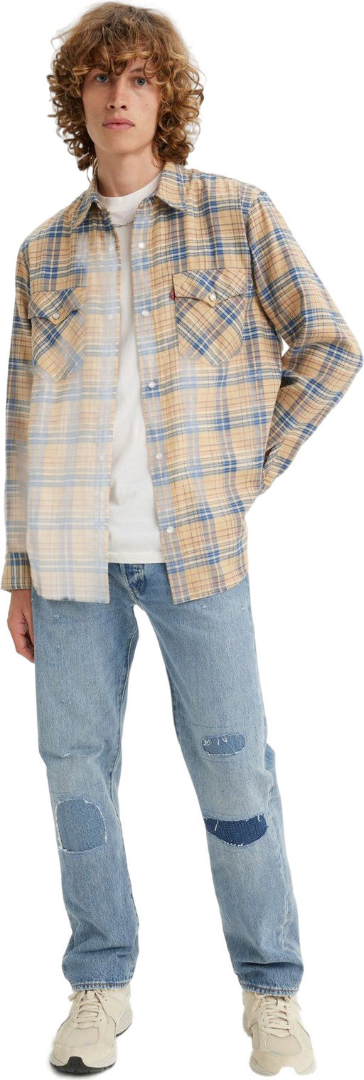 Мужские джинсы 501 Levis Original Fit. Легендарный прямой крой с ширинкой на пуговицах и аутентичный внешний вид. Прямой крой по всему объему бедер, слегка зауженные книзу брючины и фирменная ширинка на пуговицах. Можно носить во всю длину или подвернутыми, в зависимости от того, что вы предпочитаете. Особенно хорошо сочетается с курткой Levis Trucker и простой футболкой с круглым вырезом для создания классического американского образа. Пуговица на металлической стойке с логотипом Levis. Классический стиль с пятью карманами. Фирменный лейбл Levis и дугообразные строчки на задних карманах. Нашивка с культовым логотипом Two Horse Pull, олицетворяющим прочность.