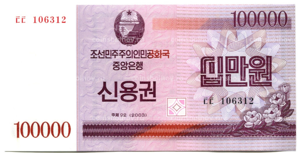 • Банкнота 100000 вон 2003 года Северная Корея