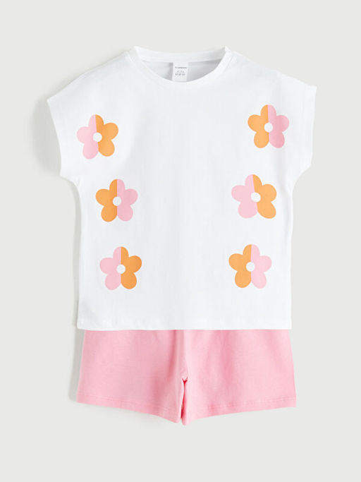 Bisiklet Yaka ?i?ekli K?z ?ocuk Ti??rt ve ?ort