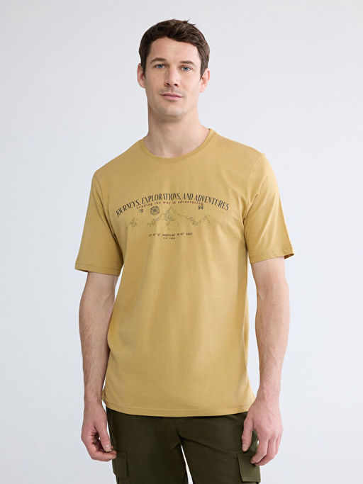 Bisiklet Yaka Bask?l? Penye Erkek Ti??rt