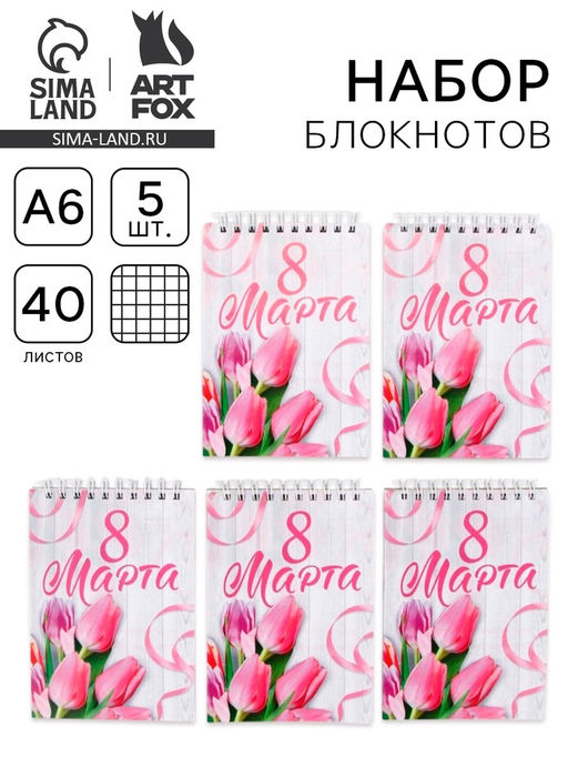 • Блокнот А6, 40 л., набор из 5 шт. С 8 марта