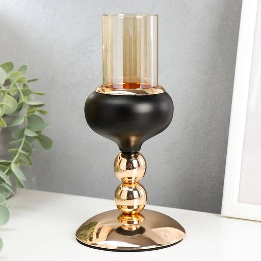 Подсвечник на 1 свечу «Золотые шарики», чёрный с золотом, 14×10×10 см