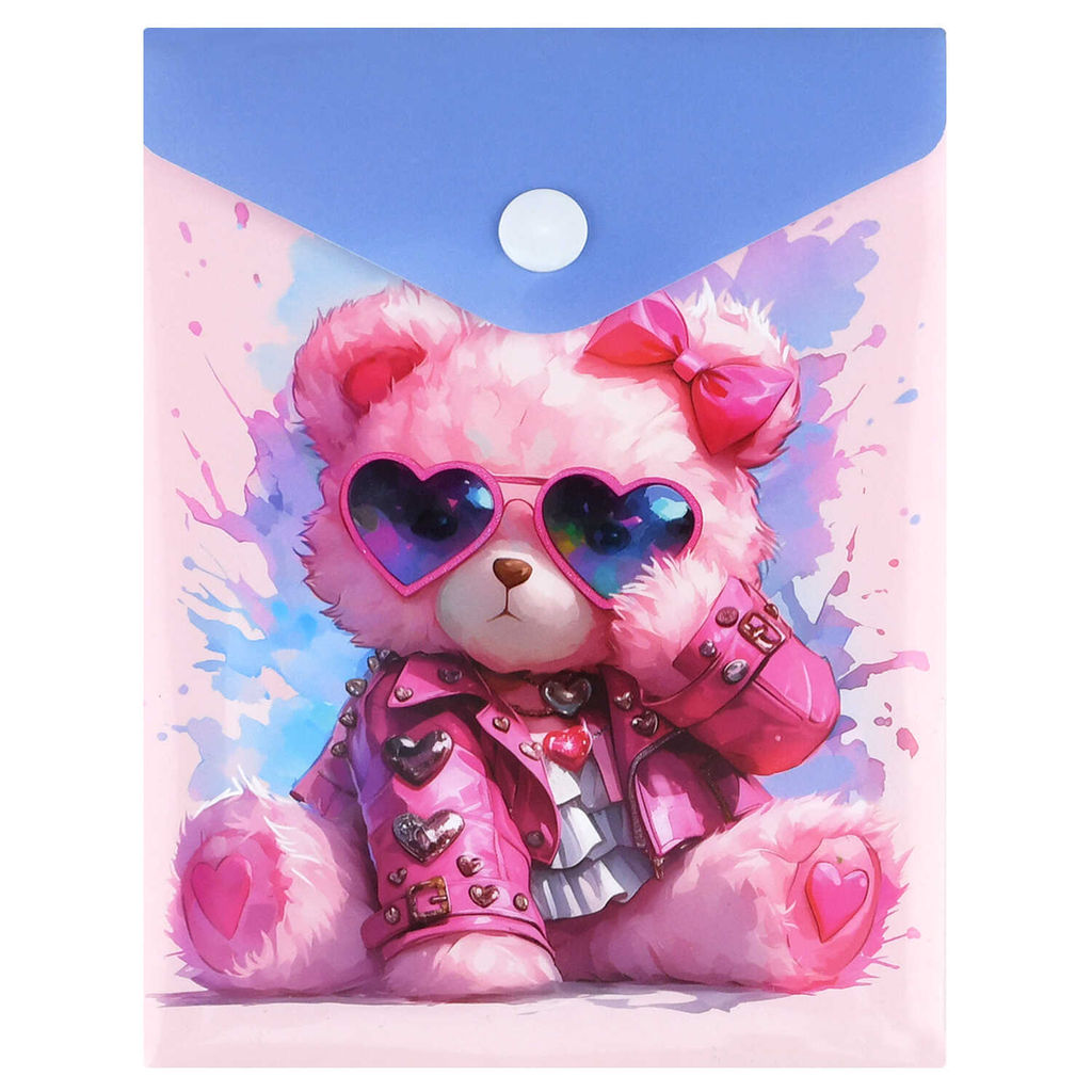 Папка для документов пластиковая Феникс+, арт. 72383/ 12 РОЗОВЫЙ МИШКА (полипропилен, формат А6, 15.8х11.4 см, 1 отделение (-я), кнопка, УФ-печать)