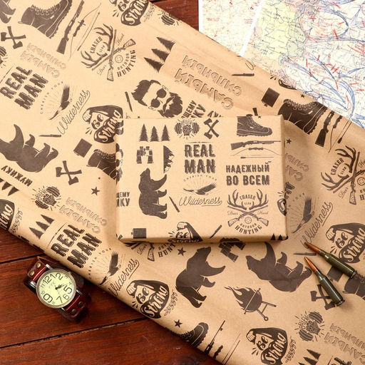 Стильный и модный тренд в декоре и упаковке. Она идеально подходит для аккуратной упаковки подарков. Дайте волю своему творческому порыву и украсьте ею декорации, стенды, витрины, а также найдите лишний повод, чтобы вручить подарок близкому человеку, красиво упаковав его в такую бумагу. Её оригинальные принты - отличное «продолжение» стильного подарка, которое способно поднять настроение любому виновнику торжества. Размер, м: 0.7 х 1. Плотность, г/м²: 75. Тематика: Надписи, цифры, буквы. Символ года: Нет. Тематика праздника: Универсальная тематика. Тематика праздника: 23 Февраля. Особенность: Крафтовый(ая). Вид: В листах. Тип листа: Односторонний. Особенность крафта: С рисунком. Бесплатная доставка: Да.