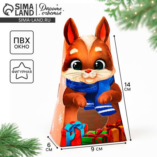 • Цена за 5 шт. Коробка новогодняя складная с окном «Зайчик», 9×16.5×6 см