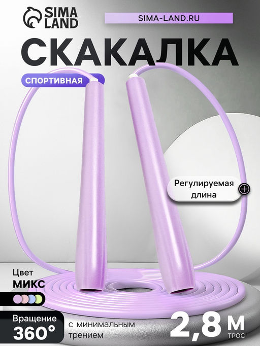 • Скакалка спортивная, 2.8 м, регулируемая, цвет МИКС