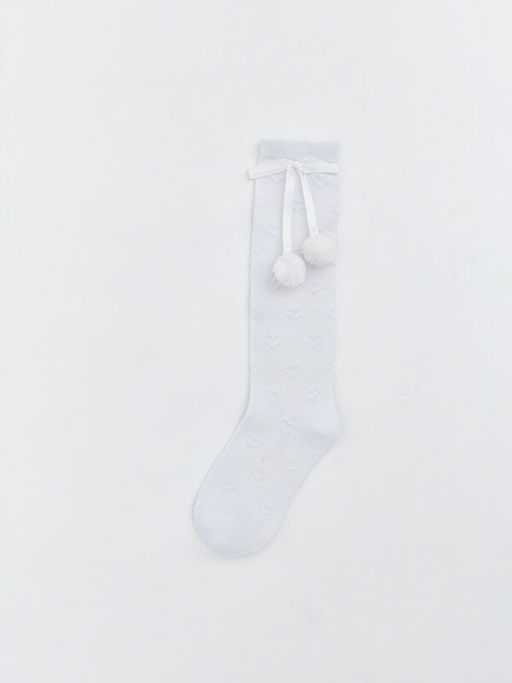 Ponpon Detayl? K?z ?ocuk Diz Alt? ?orap