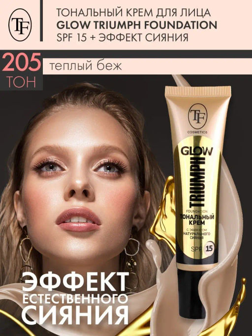 • TF Крем тональный GLOW TRIUMPH Foundation тон 205 теплый беж 30мл