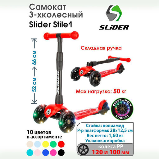 Самокат трехколесный Slider Stile, складной, колеса со светом