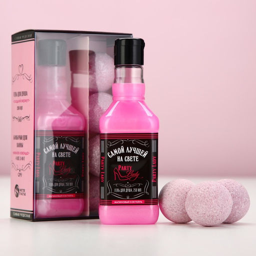 • Подарочный набор косметики Party Lady, гель для душа виски 250 мл и бомбочки для ванны 4×40 г, Чистое счастье