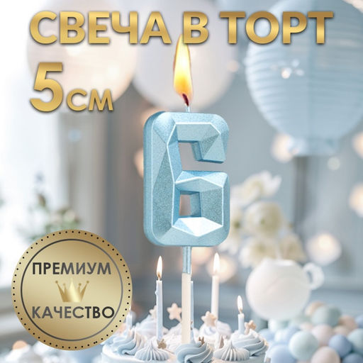 • Цена за 3 шт. Свеча в торт на шпажке «Алмаз», цифра 6, голубая, 5 см