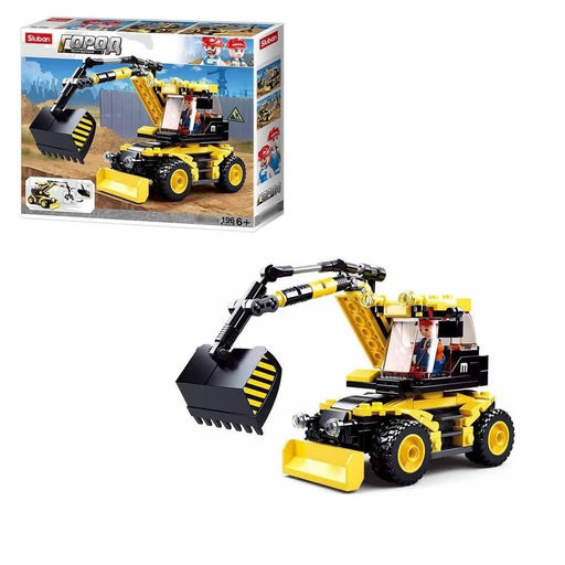 Конструктор SLUBAN 196 дет. "Город. Экскаватор" (М38-В0805) кабина поворачивается, 2 сменных ковша, в коробке