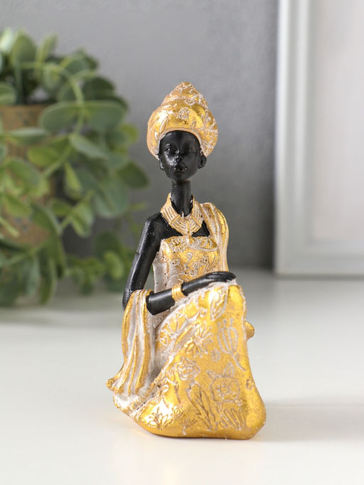 Фигурка полистоун «Африканка в золотом платье с белой патиной», чёрный, 7×5×11 см