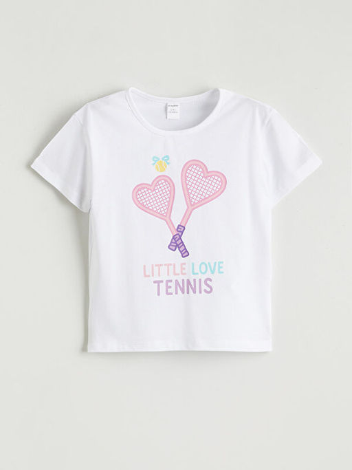 Bisiklet Yaka Bask?l? K?z ?ocuk Ti??rt