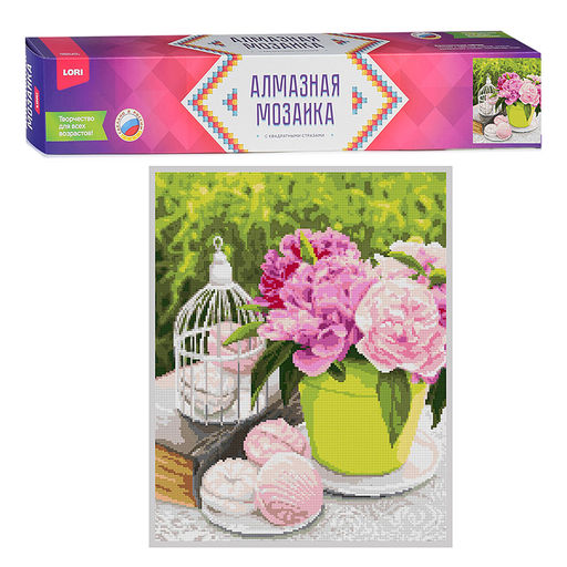 Алмазная мозаика 40*50 см (полное заполнение) "Сладости и пионы"