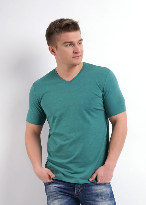 Фуфайка базовой посадки, v-образный вырез горловины, короткий рукав. 92% хлопок, 8% эластан. Плотность 180-190г/м2