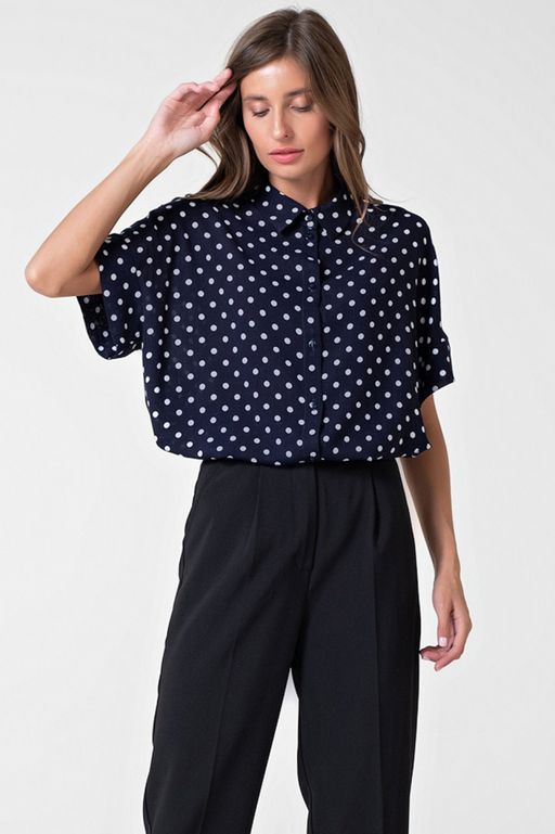 Рубашка оверсайз с коротким рукавом в горошек на синем