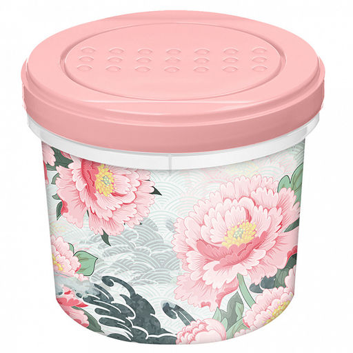 • Банка пластмассовая 0,7л, д11,5см, h10,2см, с завинчивающейся крышкой, с декором "Сад пионов", розовый (Россия)