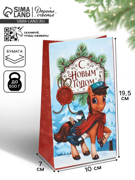 • Цена за 10 шт. Пакет подарочный без ручек «С Новым годом», 10×19.5×7 см