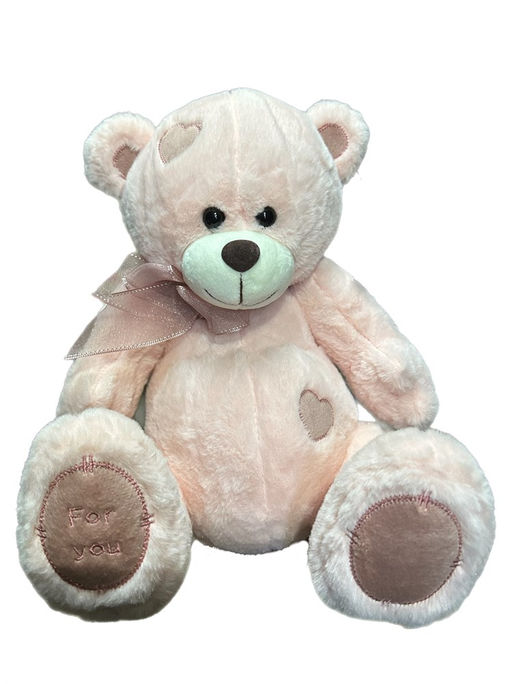 • Мишка розовый с аппликацией "сердечко", 30см (Белоруссия)
