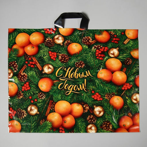 Цена за 25 шт. Новый год. Пакет "Оранжевое настроение", полиэтиленовый с петлевой ручкой, 60х50 см.