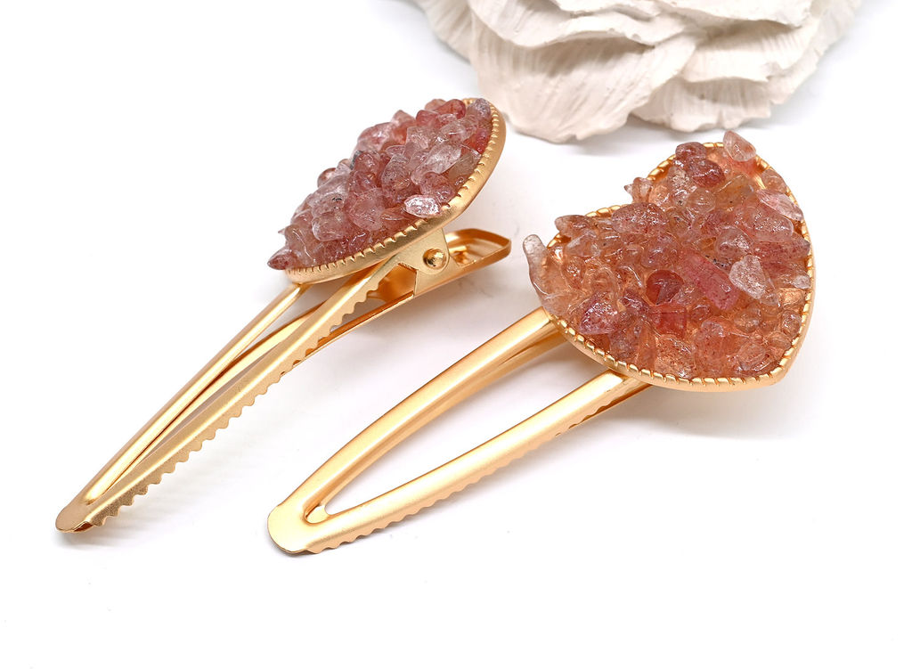 • Зажим для волос Сердце с клубничным кварцем 7,5*3,3*2см