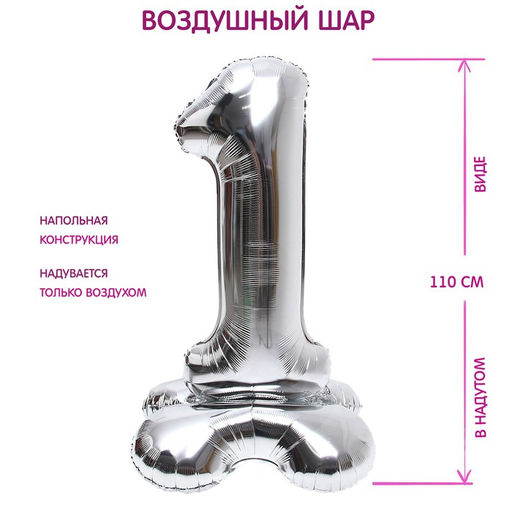 • Воздушный шар фольгированный 50" «Цифра 1», на подставке