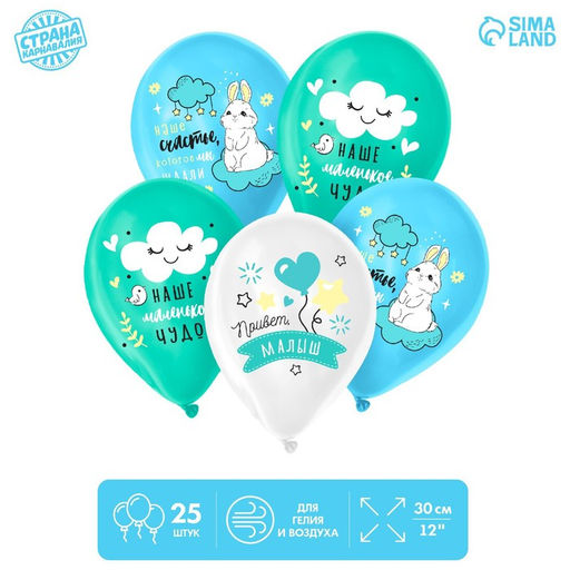 • Воздушный шар латексный 12" «Привет, малыш», мальчик, пастель, 25 шт., МИКС