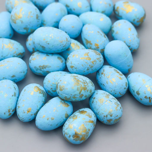 Эти голубые пасхальные яйца с золотистыми блёстками станут ключевым элементом весеннего декора. Набор из 36 заготовок даёт простор для творчества и помогает создать по-настоящему праздничную атмосферу в доме. Лёгкие пенопластовые основы идеально подходят для детского творчества и тонкой ручной работы.